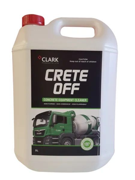 THIS IS A DANGEROUS GOODS PRODUCT, Shipping and Costs may vary. CRETE-OFF is a liquid compound specifically formulated to dissolve builtup cement on tools and equipment associated with the concrete ready-mix industry. It is also used to remove cured cement, concrete, mortar, and grout from any surface and also removes old rust and oxides. The highly concentrated formulation is compounded to maintain sufficient acidity to dissolve hardened cement. The softened concrete substance is then cold water rinseable with a high pressure washer.