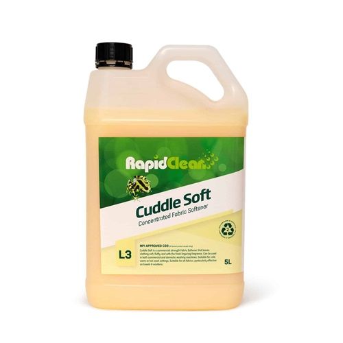 Rapid Clean Cuddle Soft Fabric Softener performs two roles in one operation softens fabrics as well as eliminating static charge. Recommended for the laundering of towels, bed linen and to reduce static cling in polyester and synthetic garments. Leaves fabrics fragrantly fresh, easy to iron and wrinkle free.