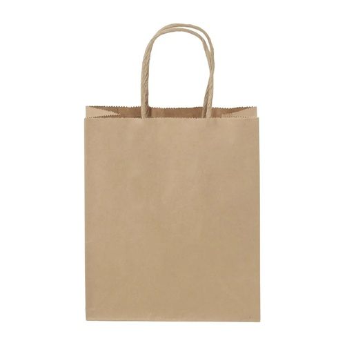 Paper bags with handles – ideal for retail applications. High quality Kraft paper carry bags with large side gussets, flat base and twisted paper handles.