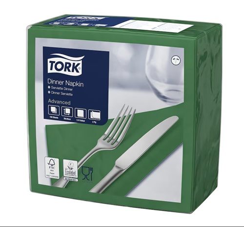 Description Tork Dinner Napkins fit all occasions, and bring class and practicality to casual dining. They come in a wide range of modern and classic colors to match your restaurant décor. Bigger size napkin for a comfortable dining experience Engage with guests through custom print - 75% of napkin users read the message Industrially compostable product*