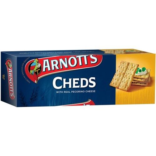 Arnott's Cheds with Real Pecorino Cheese are a delicious snack! Arnott’s Cheds are the perfect savoury biscuit pantry staple for effortless entertaining. Made with real cheddar and a generous sprinkle of pecorino, these delicious crackers are a delightful addition to any cheese board or platter. Enjoy these cheese crackers with a smooth cream cheese for a light afternoon snack or on their own for a delicious on-the-go bite. • Crackers baked with real cheddar and sprinkled with real Italian pecorino cheese • Toppable cheese crackers • Crackers without the artificial colours, flavours or preservatives