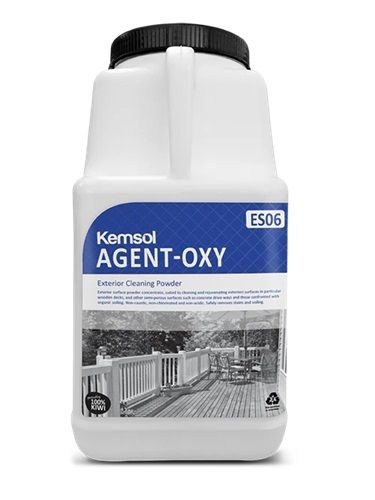 Multi-Purpose Cleaning Powder Concentrated surface cleaner that rejuvenates exterior surfaces. Suitable for wooden decks, and other semiporous surfaces such as concrete drive ways and organic soiling. Non-caustic, non-chlorinated and non-acidic formula. Directions CONCRETE/TILED SURFACES: Dissolve 5 scoops into a plastic bucket with 5 litres of hot water. Allow the solution to sit for approx 3-5 mins then evenly pour directly over surfaces. Leave for 2 mins to activate then scrub with a brush or stiff broom, adding more solution to surfaces as required. Rinse well and allow to dry. WOODEN DECKS/SURFACES: Use the same process as above, however a more even coverage may be achieved with the use of a plastic watering can, while also reducing product wastage through gaps in decking timber. AGENT-OXY may be used with spray equipment, as long as product is completely dissolved. Always rinse or wash areas with fresh water to finish. While AGENT-OXY should not cause any damage to plants, foliage or animal life, always immediately rinse the product off with fresh cold water. AGENT-OXY is designed for ‘best use’ with hot water, above 50-60°c and it will foam up on application.