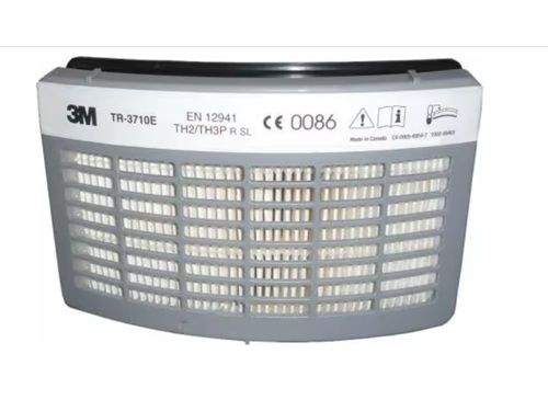 High efficiency PAPR-P3 particulate filter, for use with 3M™ Versaflo™ Powered Air Respirator TR-300+. The filter can be changed quickly and easily by hand.