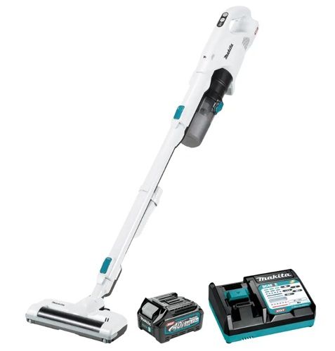 Makita – Powerful Cyclonic Filtration: Designed with a 400 ml canister featuring innovative cyclonic filtration, this vacuum efficiently separates dust and debris, ensuring powerful suction and maintaining optimal performance. Motorized Head Roller Brush: Featuring a motorized head roller brush, this vacuum enhances cleaning efficiency by effortlessly agitating carpet fibres and lifting embedded dirt and pet hair. It adapts to different surfaces, ensuring a thorough clean on both carpets and hard floors. Customizable Suction Power: With a 4-mode suction power selection (110W, 70W, 40W, and 20W), you can easily adjust the vacuum's performance to suit various cleaning tasks, ensuring effective cleaning across different surfaces. Impressive Runtime on 40Vmax Battery: Enjoy extended cleaning sessions with runtimes of up to 60 minutes on Mode 1, 40 minutes on Mode 2, 20 minutes on Mode 3, and 14 minutes on Mode 4, allowing you to tackle large areas without interruption (with BL4025) Quiet Operation: Operating at a maximum noise level of just 66 DBA on high power mode, this vacuum is comparable to the sound of a quiet office or a soft conversation, allowing you to clean without disrupting your home or workspace. Effortless Waste Disposal: The one-touch canister removal feature makes waste disposal quick and hassle-free, allowing you to empty the canister with minimal mess and effort.