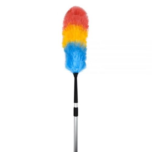 This electrostatic duster attracts and holds fine dust. Its flexible head bends to reach hard to clean places.